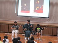 三線やかぎやで風を4年生児童が実演する場面もあり、沖縄の伝統芸能は、多くの先人達により、たゆまなく守り伝えられてきた県民の貴重な財産であることを共有しました。