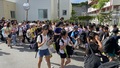 出発式の後は、全校児童で「いってらっしゃい!!」