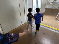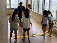 アイマスクをして歩く…お友達の肩や腕に手を添えていても…「怖い!進めない!」と、思わず心の声がこぼれます