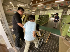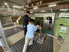 車いす体験では、「重い~!」「段差で前タイヤが上がらない!!」などなど、これこそ実体験の醍醐味ですね