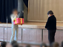 全校児童に見える形で贈呈することができました。たくさんのご協力ありがとうございました。