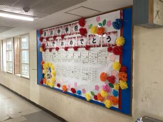 1学年フロアで先生方の紹介の掲示