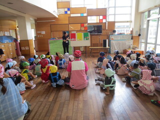 栄養士さんのお話「3色の栄養」を聞いたりして、食べ物への関心を膨らませながら過ごしました。