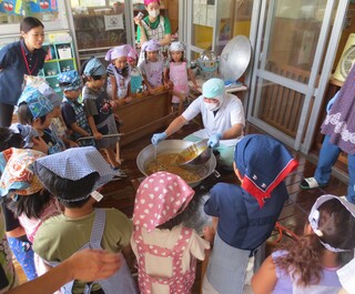3歳児、2歳児の子どもたちも大きな鍋を見て、大興奮でした!