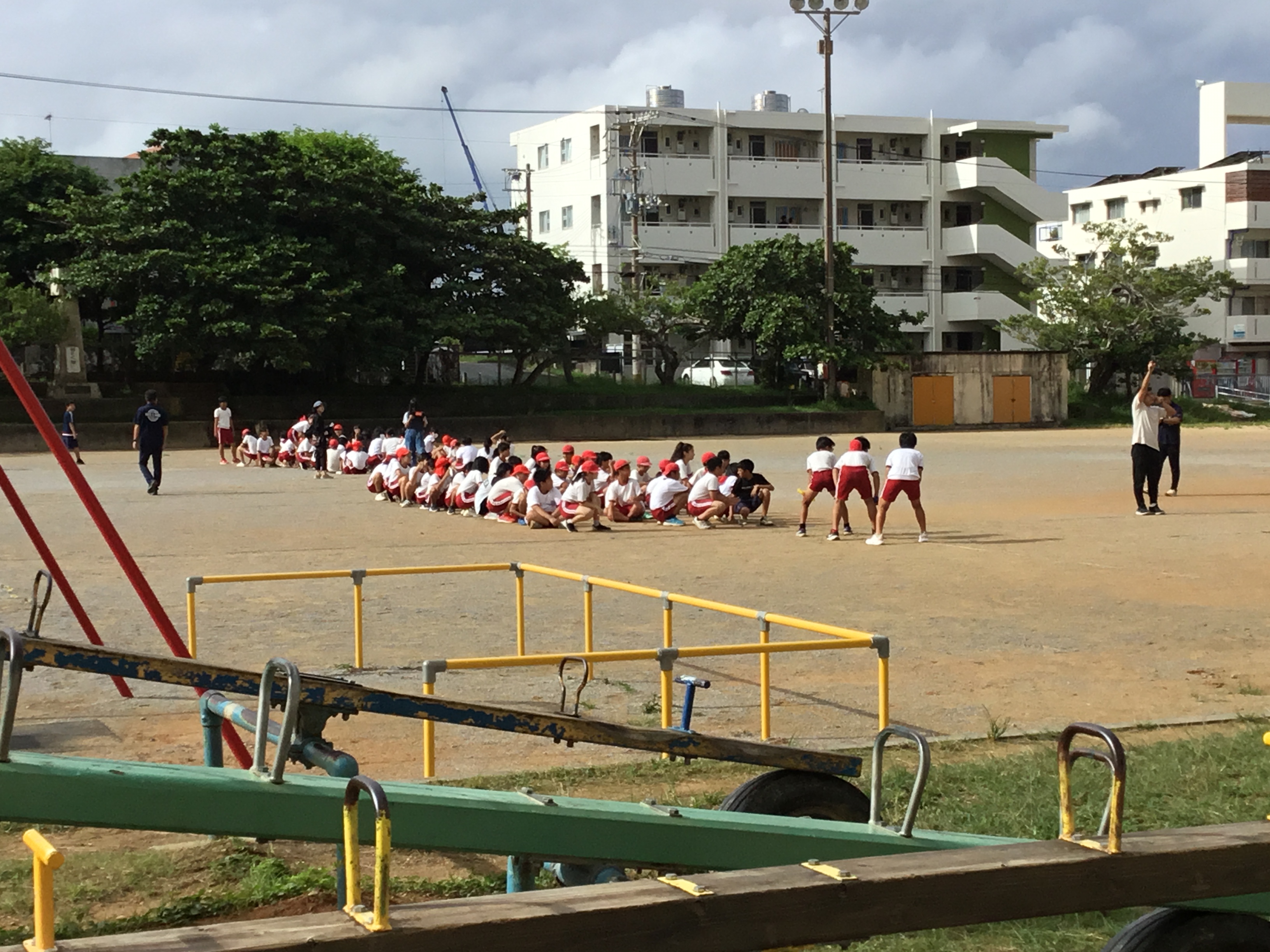 6年生が体育でリレーをしていました。1組、2組、3組、さて勝ったのは?