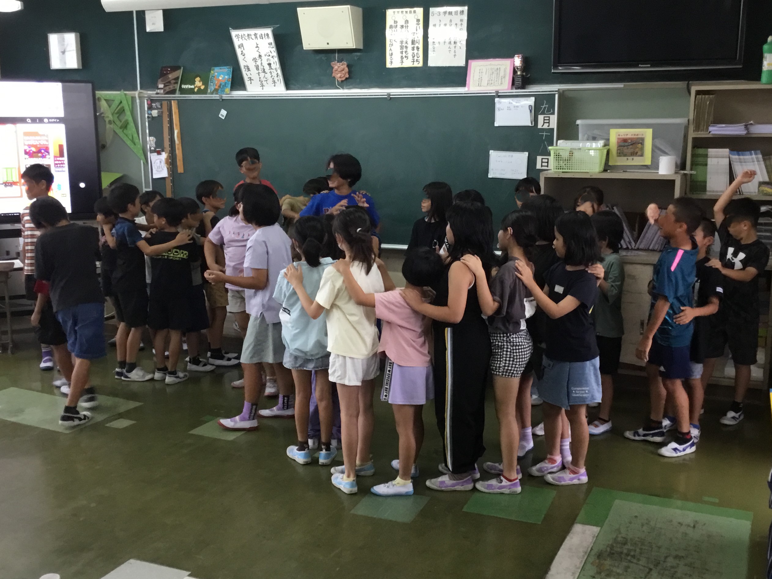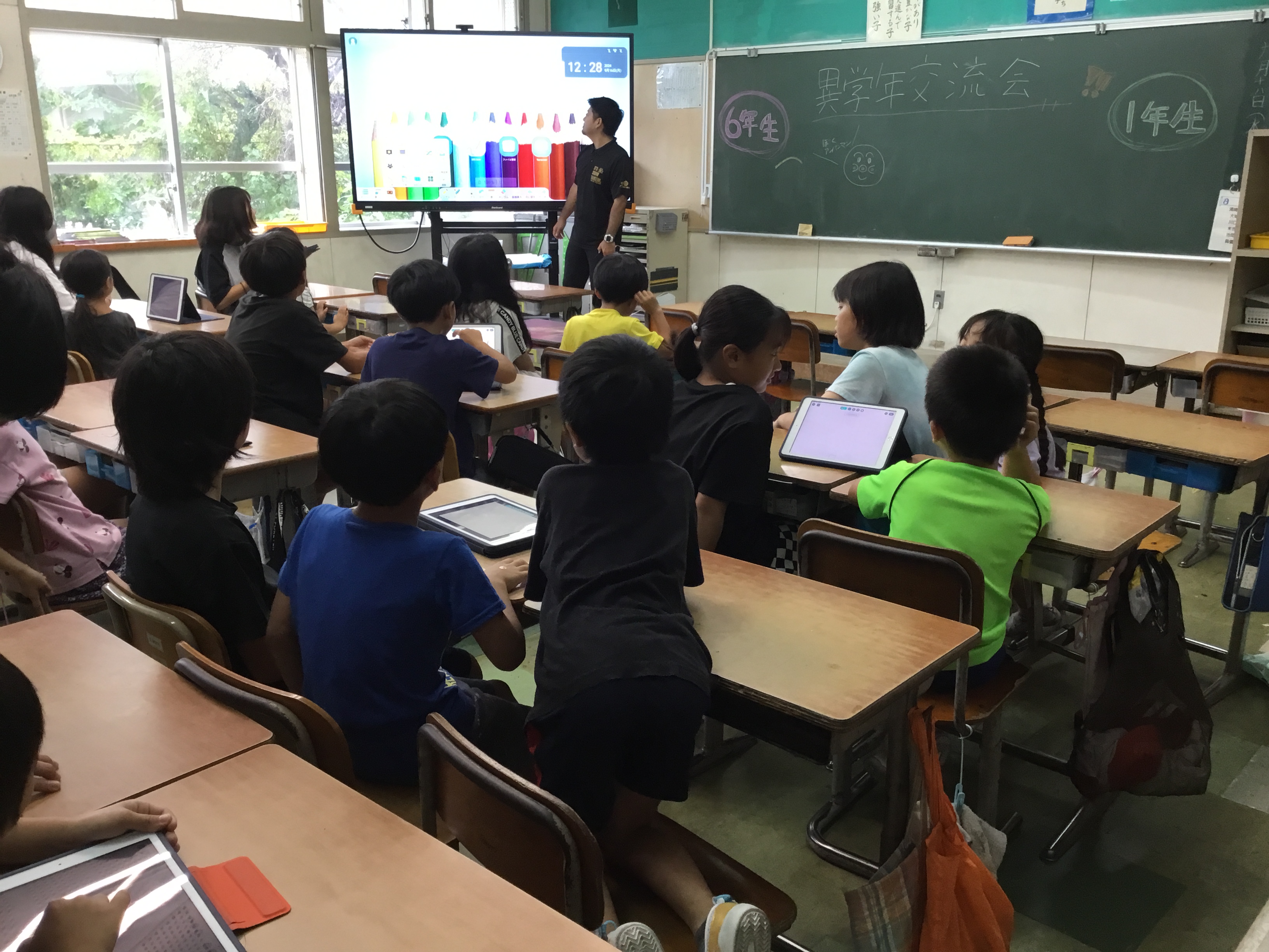 今日、異学年交流がありました。1年生と6年生、2年生と4年生、3年生と5年生が楽しく交流しました。