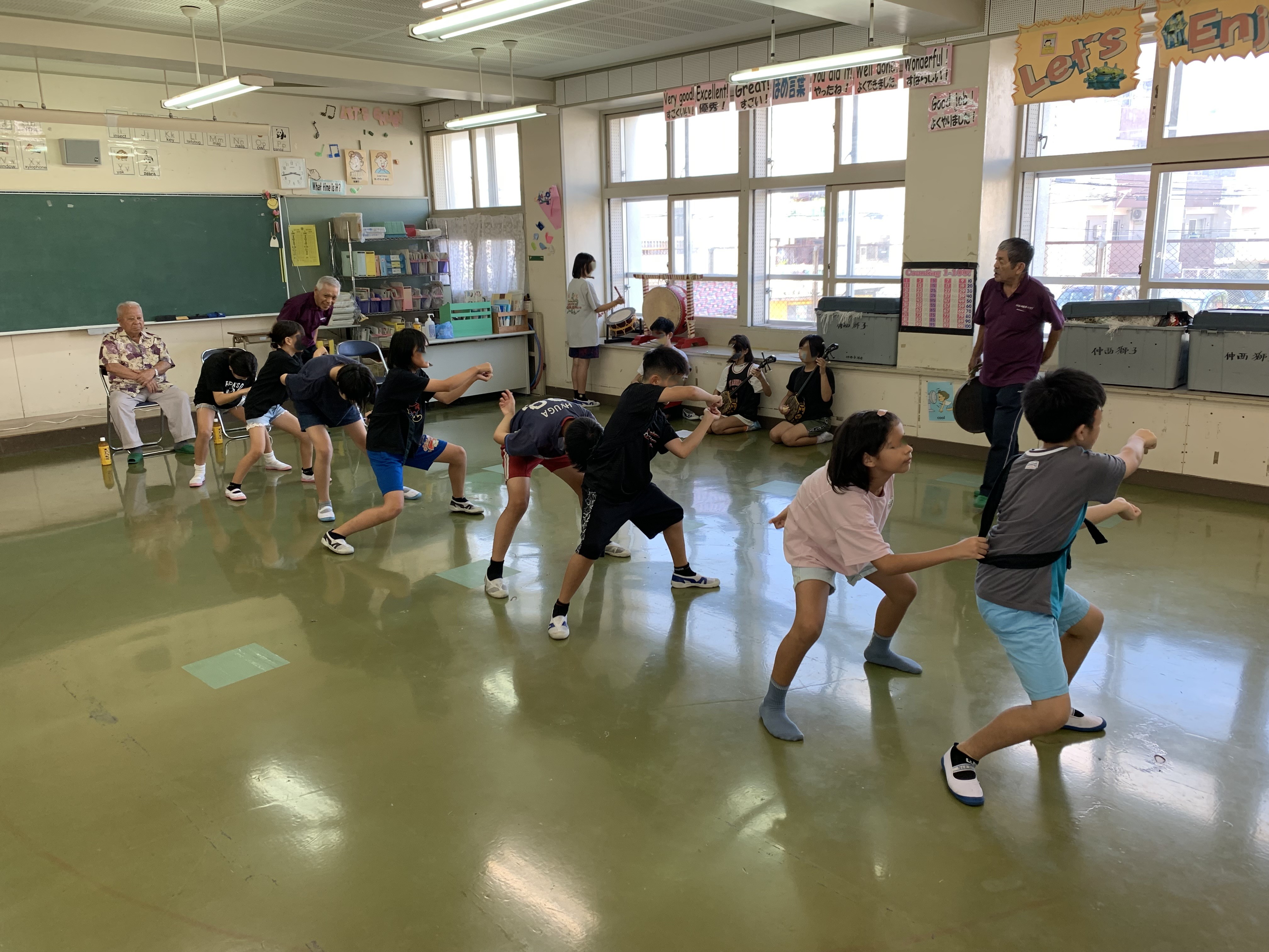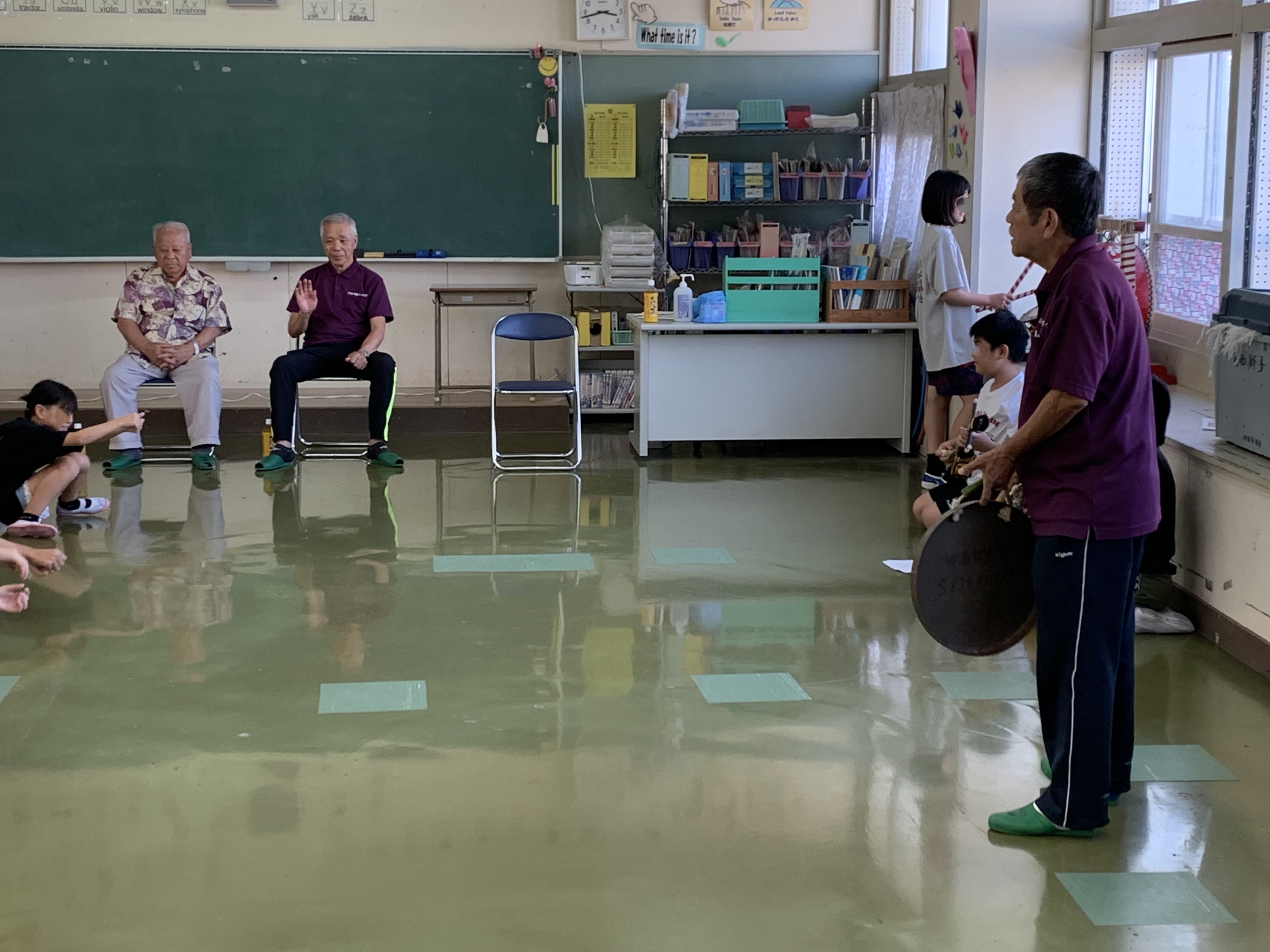 運動会5年組体操の中で、獅子舞が登場する予定です。仲西獅子舞保存会の皆さんが来校し、指導してくれています。