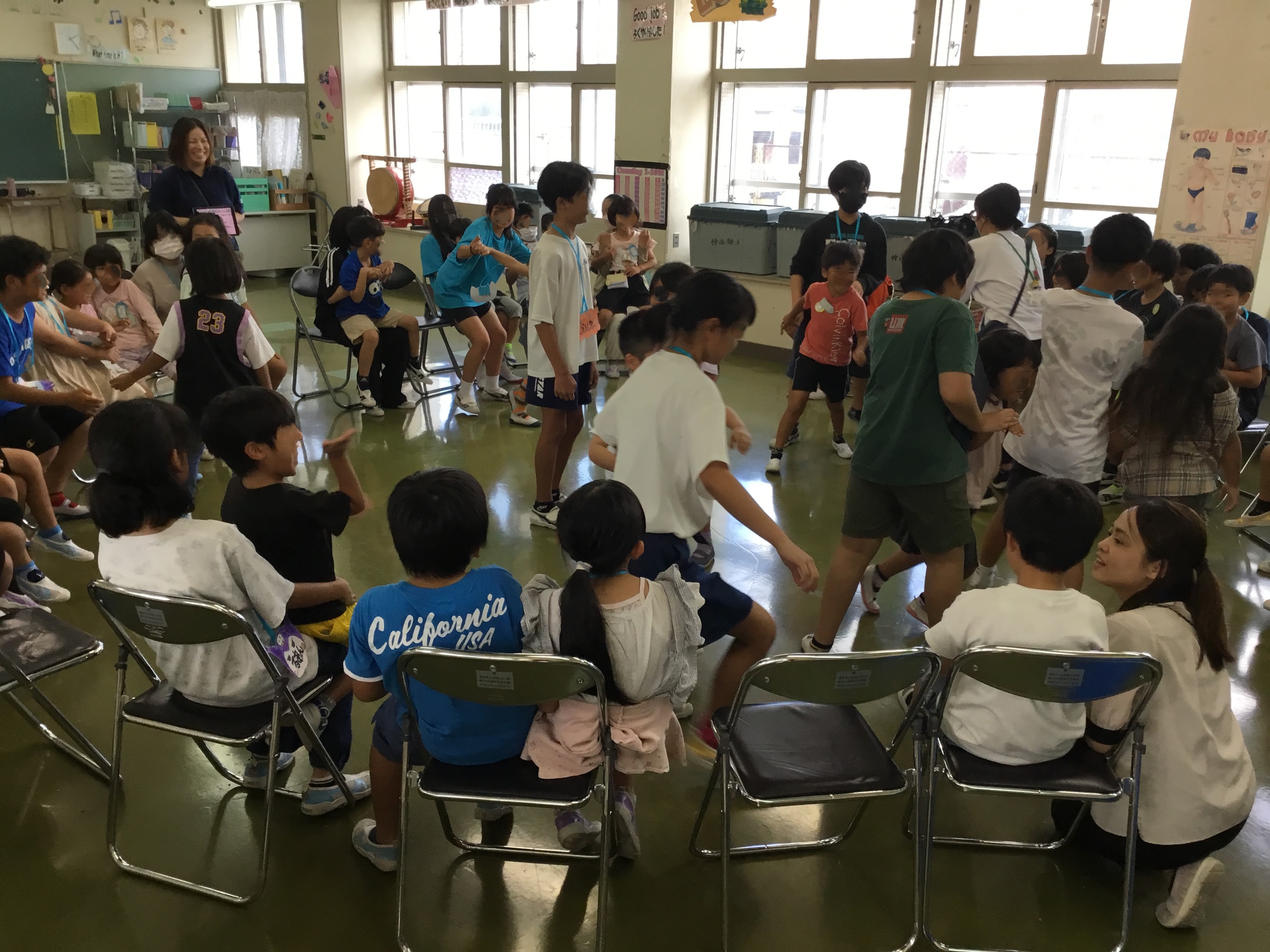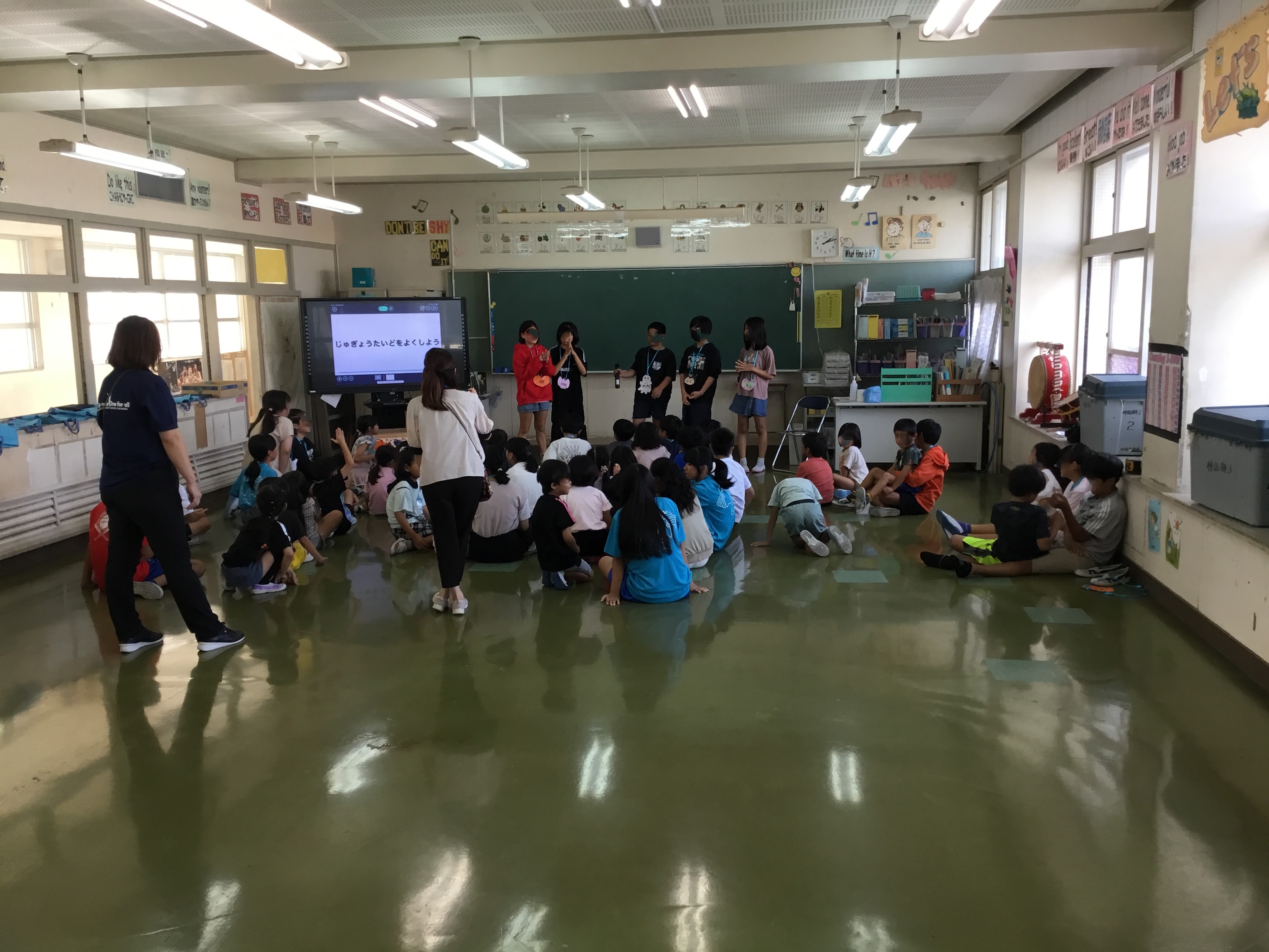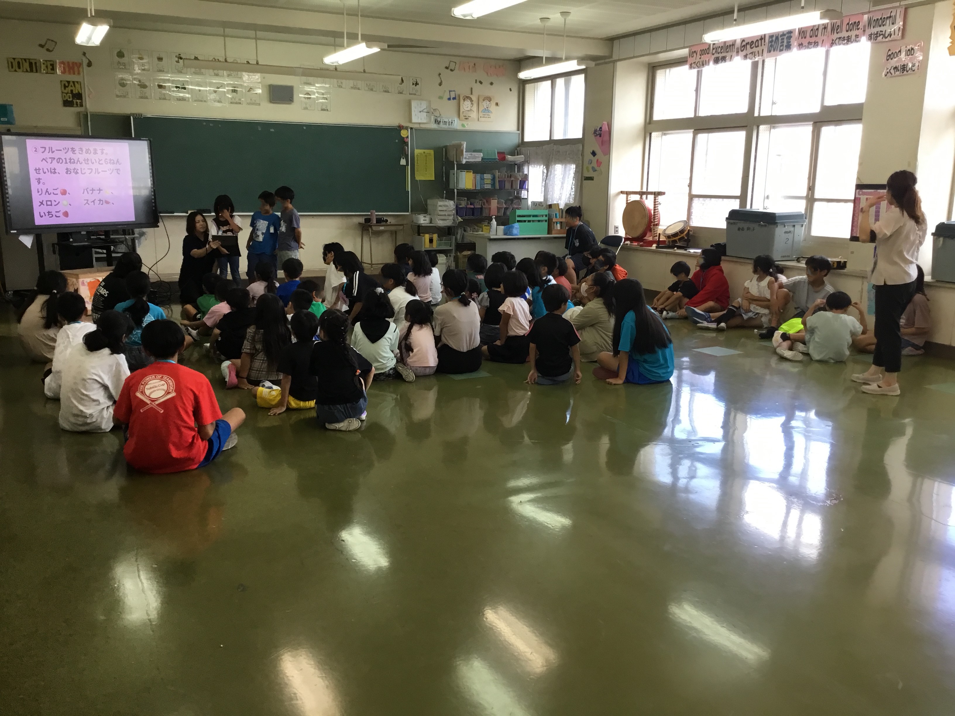 公開日 2024年10月23日 1年生と6年生が交流会をしていました。6年生は学校生活をよりよくするにはどうすればいいかということを、動画を駆使して1年生に教えてくれていました。その後、1年生の提案でフルーツバスケットをして楽しんでいます。