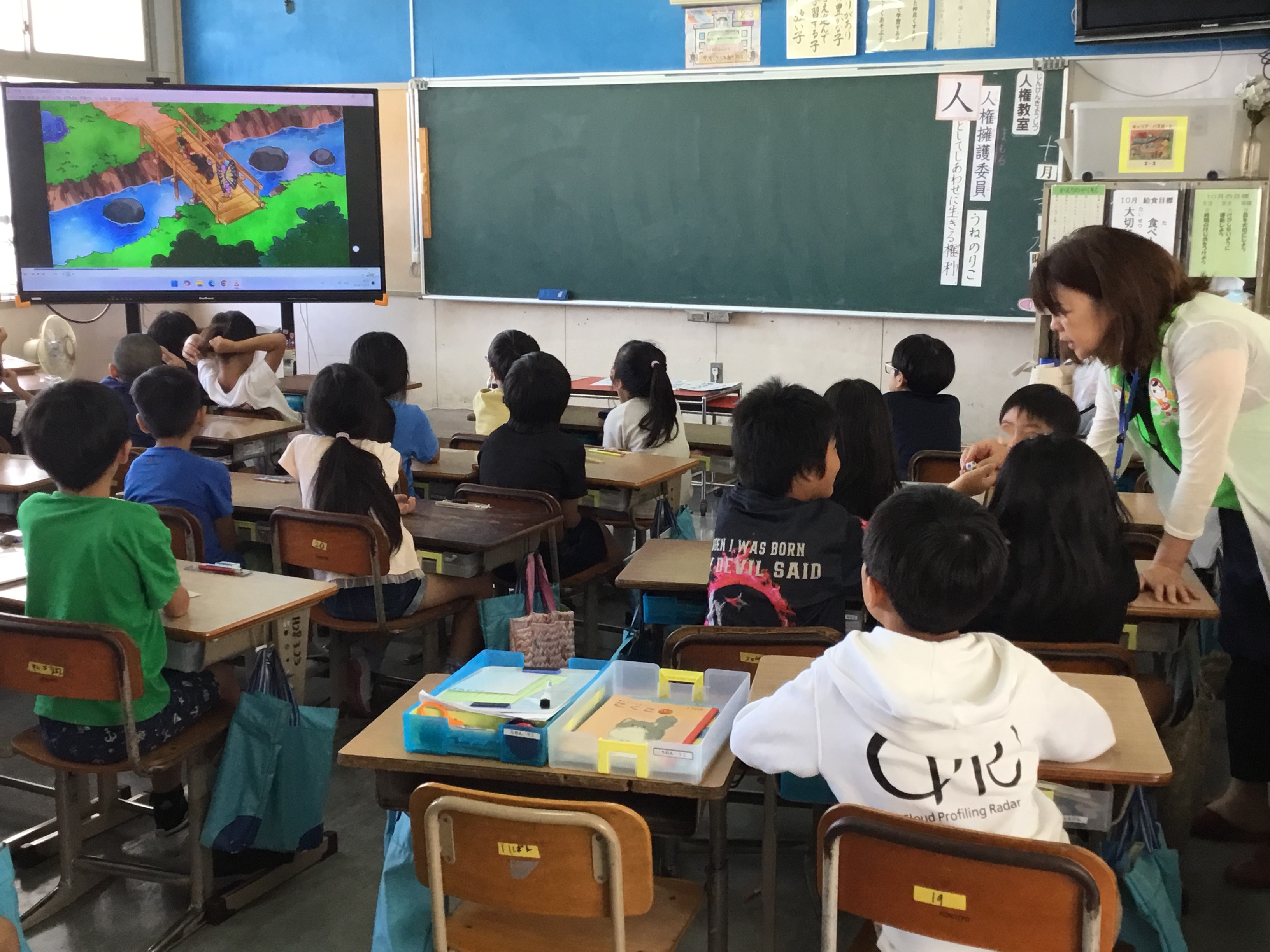 人権擁護委員の皆さんがクラスに1人ずつ入り、お話をしてくれました。