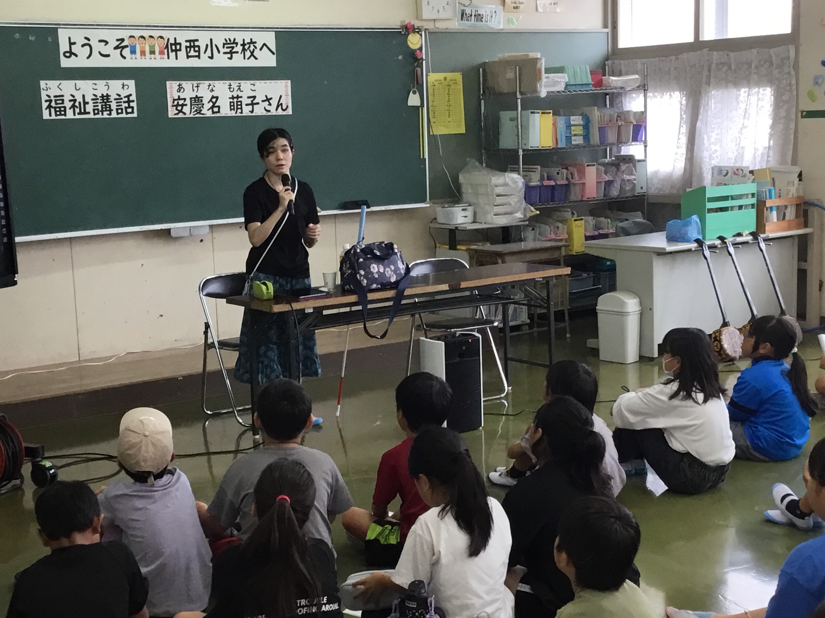 3年総合(福祉)の学習で、視覚障害を持つ安慶名萌子さんをお招きして、講話をしていただきました。安慶名さん目線の動画を見せながら、まちを歩くことがどんなに大変かをお話しくださいました。子どもたちは、自分たちにできることは何かないかを考えることができました。
