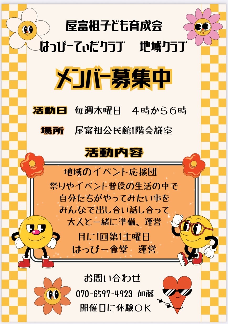 公開日 2026年02月06日 平素より、本校の教育活動へのご理解とご支援を賜り感謝申し上げます。 屋富祖子ども育成会より、イベント応援団メンバー募集のお知らせが届いています。 我こそはと思う生徒の皆さん、ぜひチャレンジを! memberbosyu[JPG:241KB]