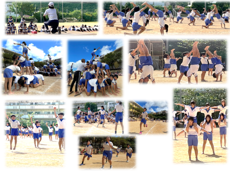 た。6年生が一体となって作り出す形や動きは,見る人を感動させると共に,演技している6年生も一体感を感じ