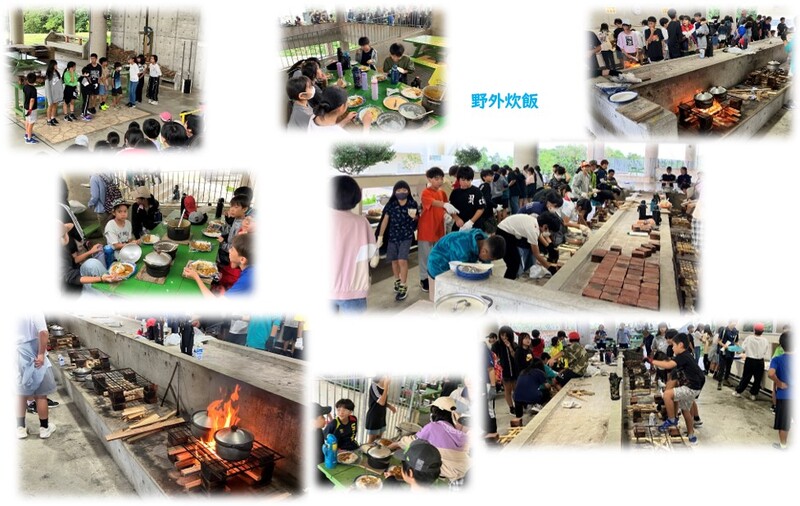 子ども達の笑顔いっぱいとなる様々なプログラム(モルック・隠れなんじぃビンゴ,野外炊飯,キャンプファイヤー等)が行われています。