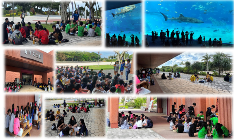 世界最大の水族館「美ら海水族館」では,ジンベイザメやマンタなどの迫力ある海の生物に感動。海洋文化館では,沖縄の歴史絵文化について学びを深め,プラネタリウムでは,宇宙や天文に関する知識を深めることができました。