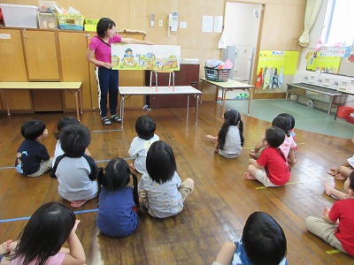 子ども達が大好きな絵本『せんたくかあちゃん』を大型絵本で見ました。