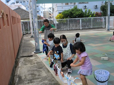 そのあと、お家から持ってきた靴下やハンカチをお洗濯しました。