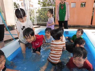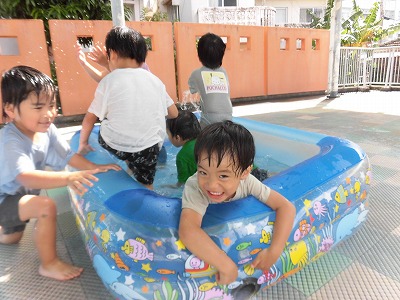 7月に入り、水遊びやプール遊びをして遊んでいます。