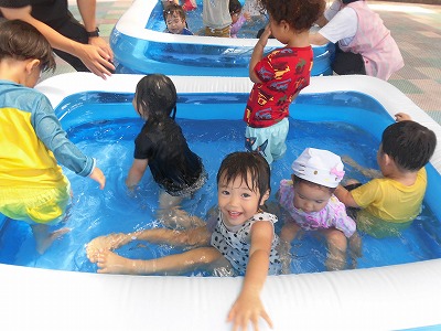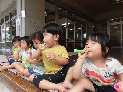 プール遊びやシャボン玉をして夏の遊びを満喫してます。。