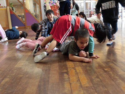 そして、トンネルになる人とトンネルを蛇になってくぐる人と交換しながら楽しんだり