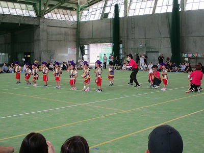 また、日頃の練習の成果を発揮し、3歳児は玉入れ、4歳児はバルーン、5歳児はエイサーやリレーを披露しました。