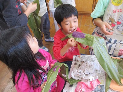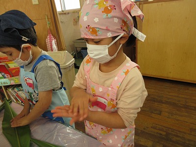 「いい匂いがするね」「上手に包めたよ!」と、友達と伝えあいながら楽しそうに取り組む姿が見られました。