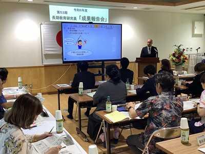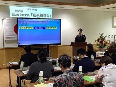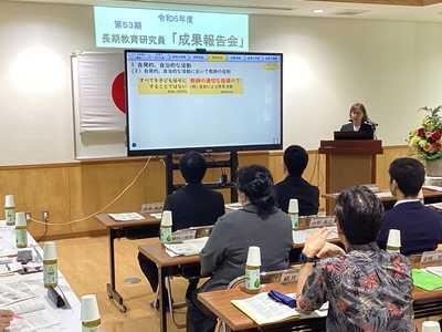 長期研究員の3名は、今年度4月から9月までの事前研修会を経て、10月に入所してから約半年間に取り組んだ研究報告を、特別研究員の2名は今年度1年間、自立支援教室「ひなた」及び適応指導教室「いまあじ」での実践報告を行いました。それぞれが現在の教育課程や県・市の施策等に向き合った研究実践を行い、その成果を現場に戻り還元していきます。