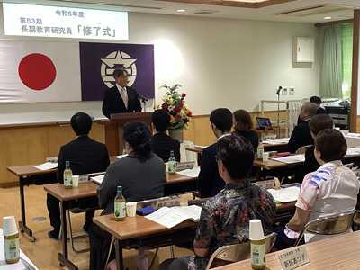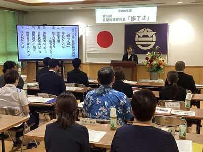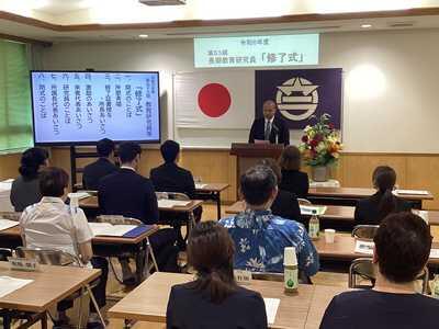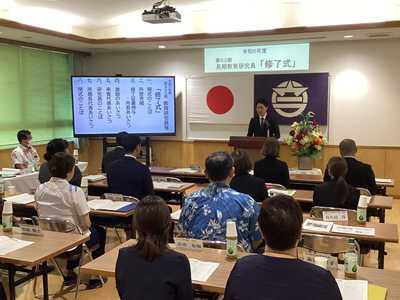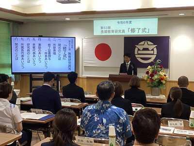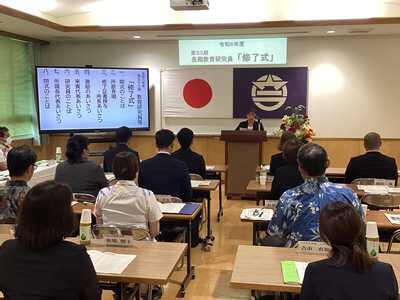 また、引き続き行われた修了式では、狩俣直美所長から1人1人に修了証が手渡され、浦添市教育長、那覇教育事務所班長、所属学校長から激励の言葉を頂きました。