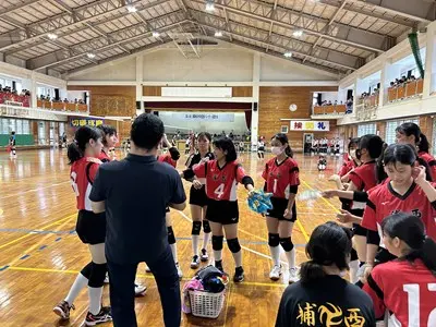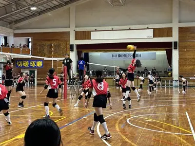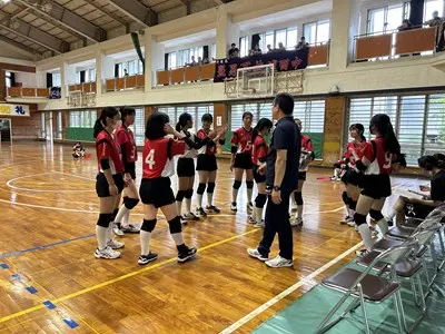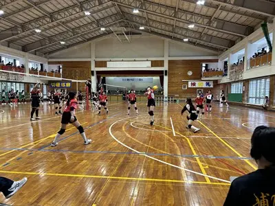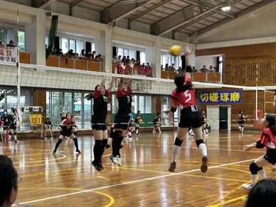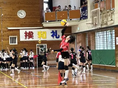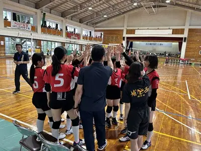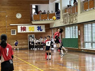 女子バレーは初日松城中、古蔵中と対戦し、ブロック1位で予選を通過しました。声を出しながら精一杯自分たちらしいプレーで頑張っていました。写真は松城中学校との対戦の様子です。接戦を制して勝利する様子を見ることができました。2日目は港川中学校に惜しくも敗れ、完全燃焼でした!みんなよく頑張りました!