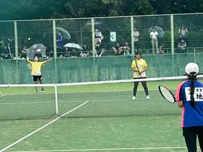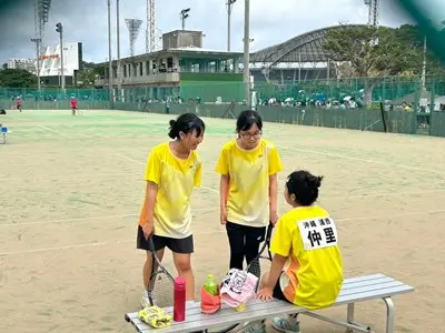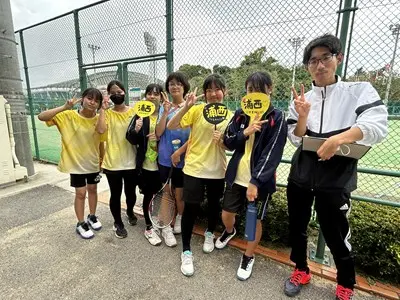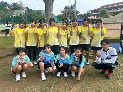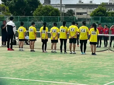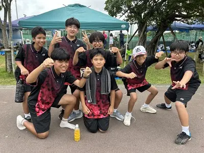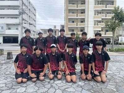 那覇地区中体連において、8日、9日男女テニス部は奥武山庭球場で団体戦、個人戦に出場しました。団体戦女子は首里中学校と対戦し、0-5で敗退しました。個人戦では、男子ダブルス2年生の辺士名・穂高ペアが県大会出場を決めています。女子も個人戦シングルス、ダブルス共に最後まで一生懸命戦い完全燃焼しました!集合写真では選手の皆さん全員いい表情をしていますね。この経験をぜひ次に活かしてください。