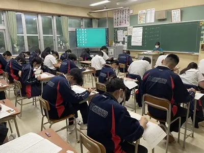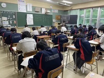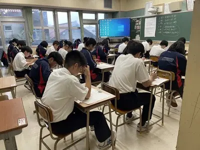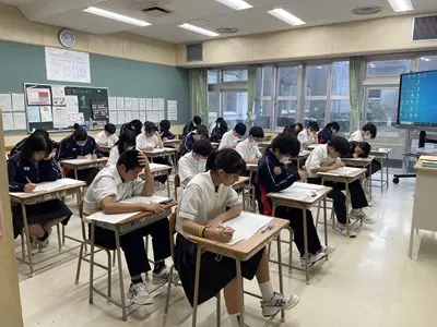 今日から2日間、定期テストです。初日の今日は国語・理科・英語のテストが実施されました。どの教室でも真剣にテスト問題に向かっています!頑張れ浦西中生!