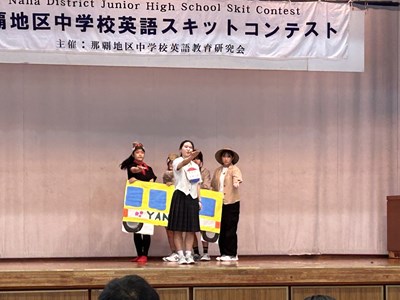 22日土曜日、開邦中学校体育館において行われた那覇地区英語スキットコンテストで、本校生徒代表が最優秀賞を受賞しました!そして、県大会に進むことが決定しました!ヤンバルクイナとマングースが登場するストーリーで、外来種も絶滅危惧種の在来種も共に大事な命を訴えています。次のステージに向けて練習は続きますが、那覇地区の代表として頑張ってほしいです! 英語科の先生方、弥生先生、アマンダ先生、ご指導よろしくお願いします!