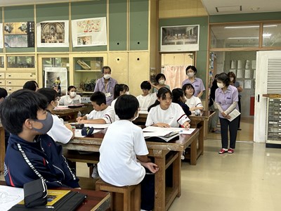 先週の授業参観にあわせて、浦西地区の民生委員の皆さんと校区内自治会長の皆さんが本校を訪れ、授業参観と給食を囲んでランチミーティングを行いました。あいさつ運動や読み聞かせでもお世話になります。小学生の時から顔見知りの皆さんを見て、「中学生になってとてもたくましくなっていますね」とおっしゃっていましたよ。生徒の皆さんが授業で頑張っている様子を見ていただき、激励してくださいました。