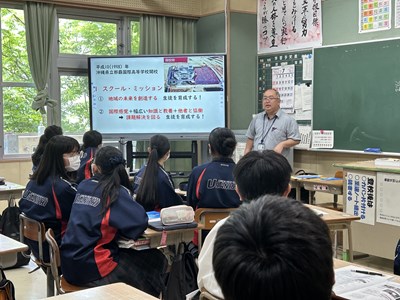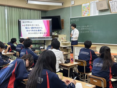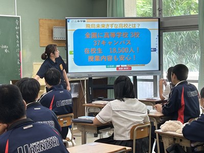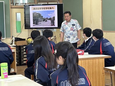 本日5.6校時、3年生対象に高校の先生方をお招きし進路学習会が行われました。浦添高等学校、陽明高等学校、浦添商業高等学校、浦添工業高等学校、那覇国際高等学校、飛鳥未来きずな高等学校の先生方に、学校の特色やこんな生徒にぜひ来てほしい!という熱い思いを語っていただきました。高校生の学んでいる姿や学校行事の様子、資格取得や進路先など、生徒の皆さんは社会にはばたく未来の自分の姿も思い浮かべながら話を聞いてくれたと思います。高校の先生方、お忙しい中どうもありがとうございました!