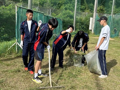 29日(土)の8時30分より、今年度初めてのPTAふれあい作業が実施されました。3年生と保護者の皆さん、本校職員が早朝から集まってくれて、およそ1時間30分暑い日差しの中頑張ってくれました。7月5日に行われるKZNプロジェクトが、きれいな運動場で実施することができます。保護者の皆さま、ご協力ありがとうございました!3年生の皆さん、部活動で参加してくれた1、2年生の皆さん、笑顔で頑張ってくれるたくましい姿、うれしかったです。みんなに愛校心が育っています!