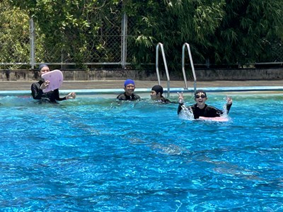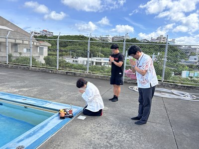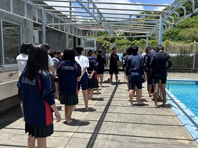 今年は水不足だったため例年と計画を変えて7月1日から浦西中学校でもプール開きが行われました。始めるにあたり教頭先生と体育主任の友利先生と一緒に安全祈願を行いました。4校時最初にプールの授業が行われたのは2年1組さんでした。歓声をあげて水をかけあいとても楽しそうです。これからますます暑くなるので水泳の時間は嬉しいですよね。安全に気を付けて充実した水泳授業にしましょうね!