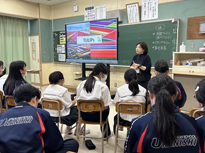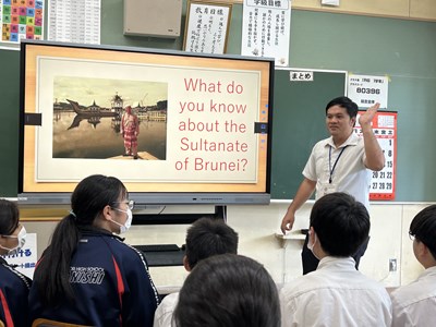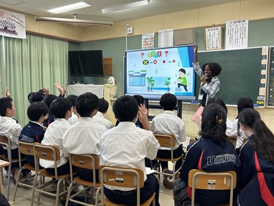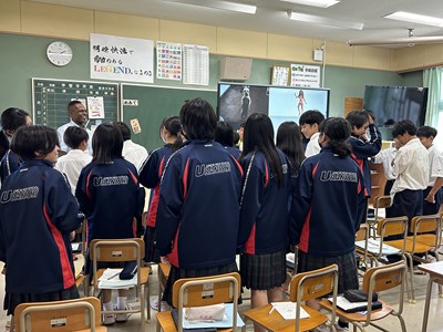7月2日の5.6校時、市内のALTの先生方が浦西中学校に来てくださり、ICEプログラムが実施されました。ALTの先生方の出身の国について多くの情報を知ることができ、食べ物クイズに挑戦したり、サンバのステップを教えてもらったりしながら、楽しいコミュニケーションの時間になりました。オランダ、ジャマイカ、ブラジル、アイスランド、ブルネイそれぞれがどんな国なのか、人々の暮らしはどうなのか、初めて出会う情報に興味津々の1年生でした。