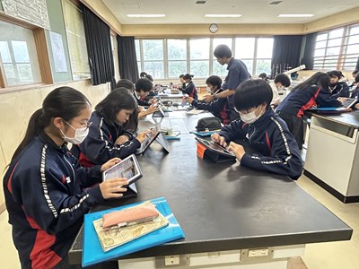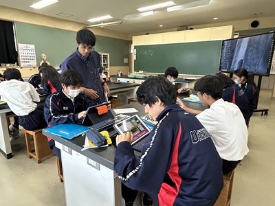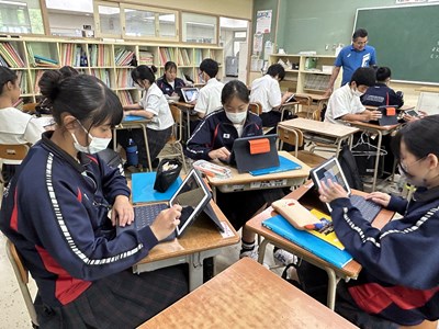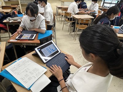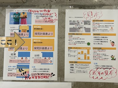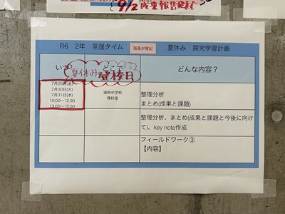 2学年の至逞タイムの時間では、9月2日の成果発表会に向けて自己探究のポスターセッション用にKeynote作成をしていました。アンケートの結果を数値でまとめたり、インタビューの内容をテキストにまとめたりしながら、真剣に取り組んでいるグループ、Keynote難しい!と行き詰っているグループそれぞれみんな頑張っています。夏休みの前にどこまでいけそうですか?聞いてみると「順調です!」と根拠のあるなしにかかわらず元気に答える2年生でした。