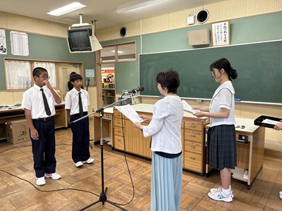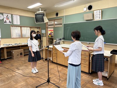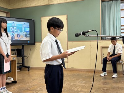 浦西中学校に全校生徒の笑顔があふれています。今日から元気に2学期のスタートをきりました。生徒会総務の皆さん、放送委員の皆さんが先生方と一緒に準備をしてくれて、オンラインでの始業式を行いました。各学年生徒代表あいさつで、それぞれの学年らしさがいっぱいの決意表明をしてくれました。その後、各部活動の大会やコンクール、検定合格者の表彰を行いました。今回も多くの皆さんを表彰することができました。