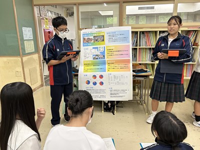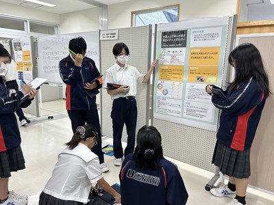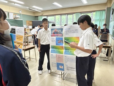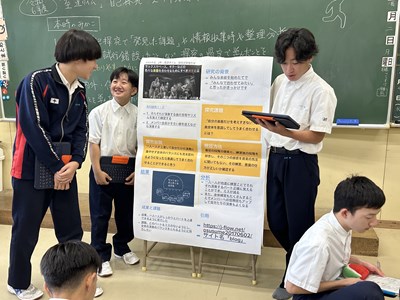 本日、1・2学年では総合的な学習の時間「至逞タイム」で取り組んできた自己探究の成果をポスターセッションの形式で報告会を実施しました。2学年では報告するグループ、質問するグループに分かれて、お互いの探究成果を共有しながら、質問タイムでは時間いっぱいいろいろな質問を投げかけました。授業参観で保護者の方も輪に加わって、真剣に子どもたちの報告に耳を傾けてくださいました。