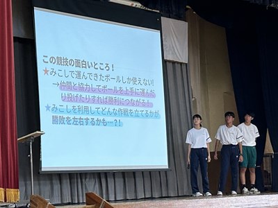 本日の生徒会朝会では浦西High祭の2つの生徒会種目についてのルール説明が行われました。全員が協力し合って楽しめるよう工夫されています。また競技に必要な道具をみんなで作ろう!とポスターを作成して呼びかけていました。多くの皆さんが手伝ってくれたら嬉しいです!