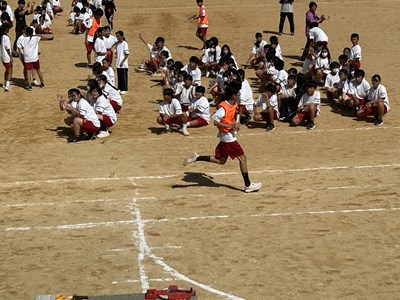 1年生の学年リレーではクラスみんなでバトンをつないで、声援のなか一生懸命走りました。入退場の確認もしながら本番に向けて気合がはいってきました。大きな声で盛り上げてくれる生徒が多いのもうれしいですね!