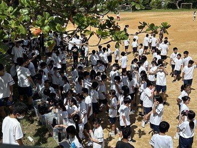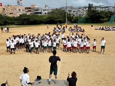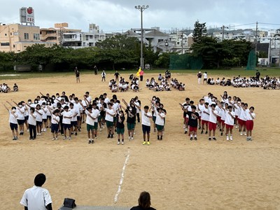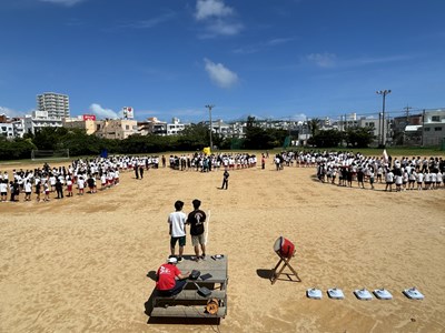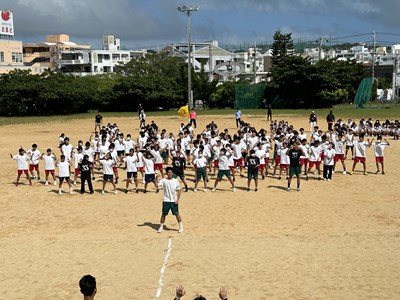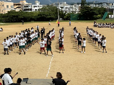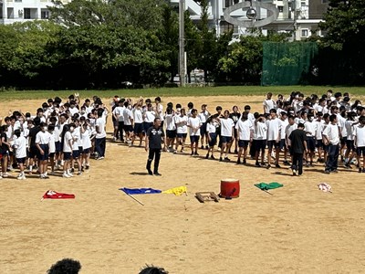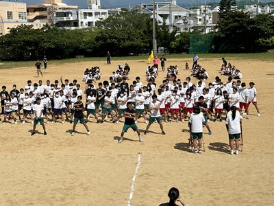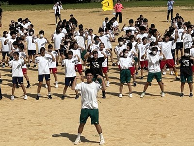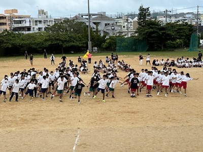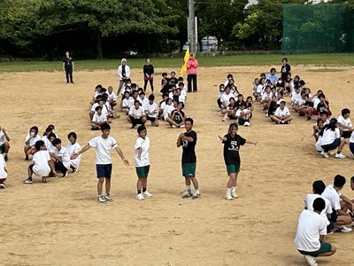 今日は久しぶりに晴れ間が見え、グランドで全体練習を行うことができました。人文字ではみんなでUNJの文字を作り、自分の立ち位置を確認しました。その後は団シングパフォーマンスの練習です。各団のダンスをすべて見るのは初めてでしたが、少し照れながら笑顔で頑張っていました。まだまだ改善の余地も見つかりました。本番まであと9日ということで、今からますますエンジンがかかってくる浦西中生です。