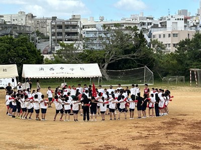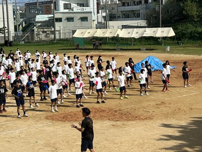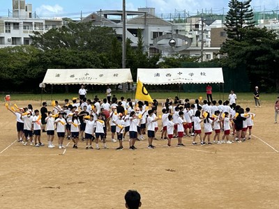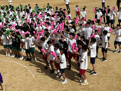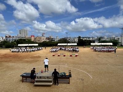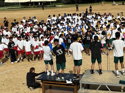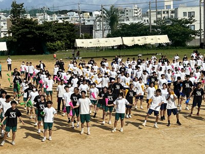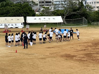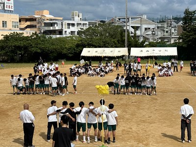 お天気に恵まれHigh祭の全体リハーサルが行われました。開会宣言から吹奏楽部によるファンファーレ、絆円陣、人文字、生徒会種目「昼に駆ける千変万化」、全体ダンス、フィナーレと盛りだくさんの演目を暑さに負けず頑張りました。特に全体ダンスとフィナーレは全校生徒で合わせるのが初めてなのに、浦西中生の元気の良さ、明るさが光っていました。本番では120%の力を発揮してくれること間違いなしです!