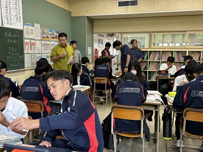 本日、浦添市教育委員会から教育委員の皆様が本校の授業の様子を参観し、浦西中学校の教育活動について多くの温かい指導助言をいただきました。生徒の皆さんが集中して授業に臨んでいる姿や、先生方が生徒に寄り添っている様子、教室環境や掲示教育、学校行事や地域と連携した取り組みについて、多くのお褒めの言葉をいただきました。銘苅教育長からは「これからも生徒の皆さんが浦西中最高!と学校や地域に誇りを持てるよう頑張ってください!」と激励の言葉をいただきました。お忙しい中どうもありがとうございました!