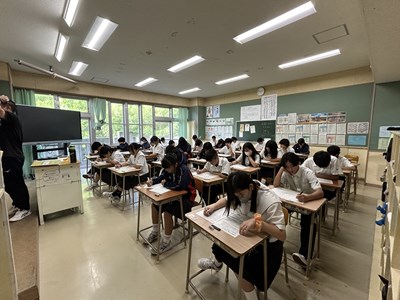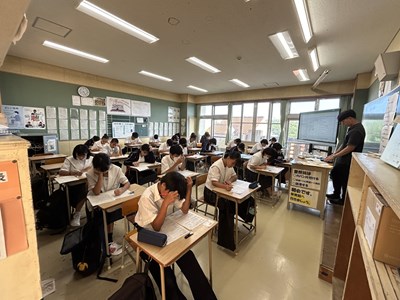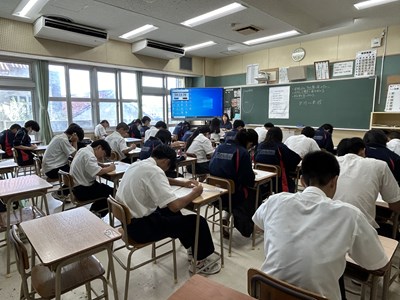 今朝は美術の単元テストが実施されました。1年生から3年生まで、真剣に取り組んでいました。