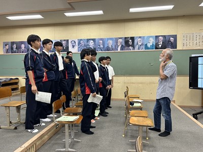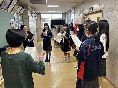 本日3年生の音楽の授業に浦西中第7代校長の糸数剛先生をはじめとする4名の講師の先生が来てくださいました。発声方法や表現方法を詳しく丁寧に教えていただいたことで、1時間の中でも上達が見られました。3年生の授業にそれぞれ1回ご指導くださるのでこの機会でぜひいろいろなことを学んでくださいね。講師の皆様どうぞよろしくお願いします!