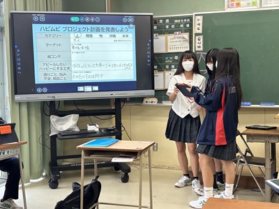 3年生のハッピームービープロジェクトでは動画制作会社CMCさんからの専門的なアドバイスを受けた後、プロジェクト計画を発表し、お互いに批評する活動を行っていました。絵コンテのアイディアやキャッチコピーの計画を聞いて、今後の困り感に付箋紙でアドバイスし合う批評活動です。ターゲットは「人」「環境」「物」「沖縄」「未来」、自分たちのアイディアでターゲットをハッピーにする工夫とは?ムービーになるのが楽しみです!