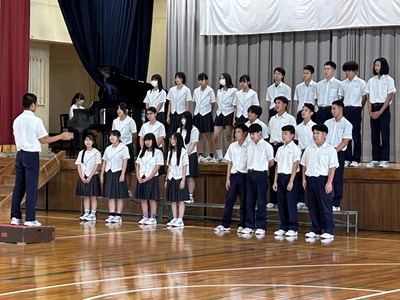 合唱コンクールに向けての体育館での学年リハーサルが行われました。学級合唱の良さは協力し合って美しいメロディーを創り出し聴く人に感動を届けられるということです。真剣さが問われる場面で力を発揮できるかが求められています。リハーサルを踏まえて、きっと心と態度の両面で3年生は必ず成長してくれると思います!