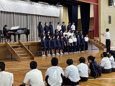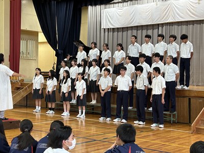合唱コンクールに向けて放課後団ごとの練習が行われています。学年を越えてアドバイスをし合い、学級の合唱をよりよいものにしようとする取り組みです。今日はC団とD団が先輩や後輩の前で歌うことで緊張や照れを払拭し歌声を披露しました。練習のない団の生徒も遠くから見守っています。みんなで素晴らしい合唱コンクールにしましょうね!