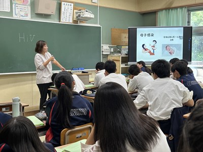 今日は全クラスでエイズ学習会が行われました。エイズに関する正しい知識を身に付けるとともに、思いやりの心を持って差別や偏見のない社会にしていくことの大切さを学びます。